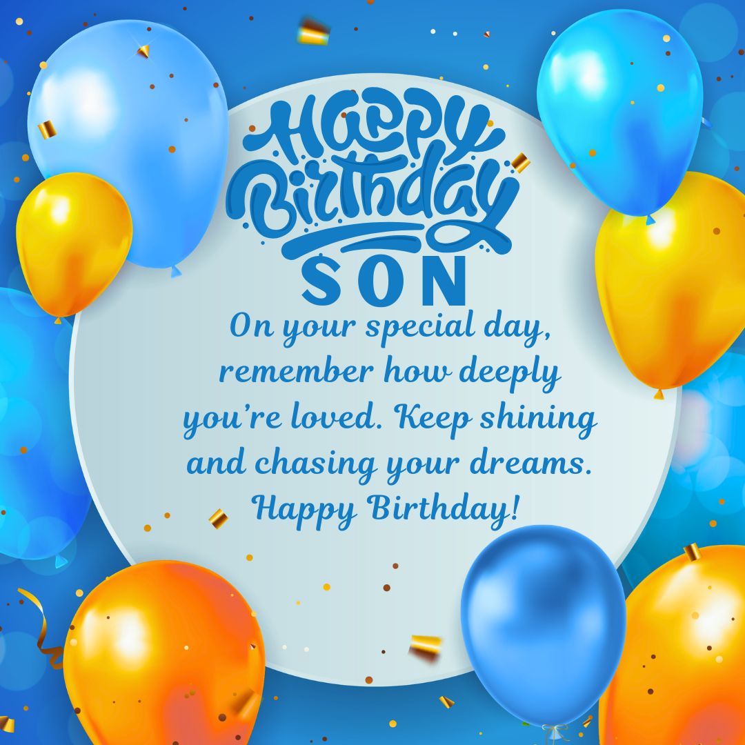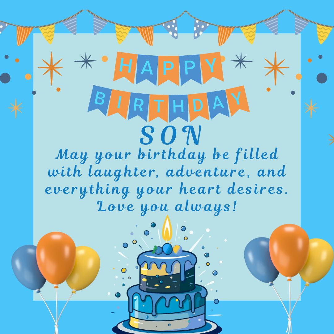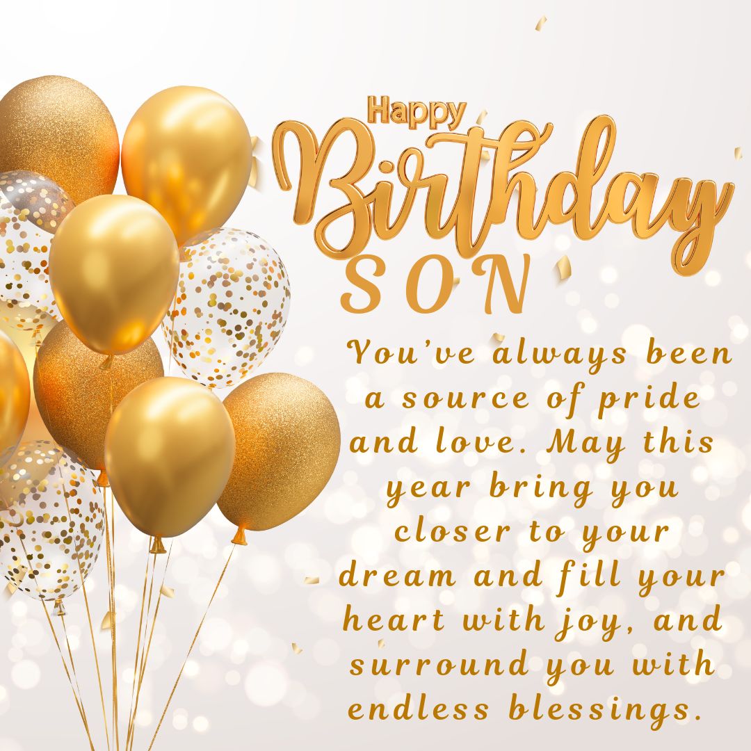 As you celebrate your son’s special day, let your words be as meaningful as the love you hold for him. Whether you choose a heartfelt message, a lighthearted note, or a touching blessing, your birthday wish can become a memory he cherishes for years to come. Paired with vibrant images of birthday balloons, cakes, gifts, and festive decorations, these wishes are perfect for cards, texts, or social media posts. So go ahead—make his day brighter with love, laughter, and the perfect message that shows just how proud you are to call him your son. Happy birthday to all the amazing sons out there!