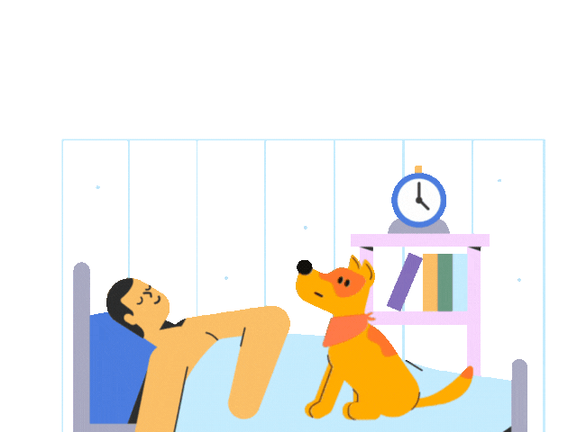 This Good Morning GIF features a humorous scene where a sleeping person is peacefully in bed as an alarm clock rings loudly and a dog barks playfully to wake them up. The lively animation brings a fun and relatable start to the day, making it perfect for sharing cheerful morning vibes.