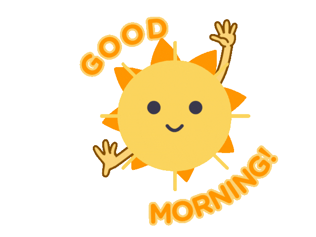 This Good Morning GIF features a cheerful, smiling sun waving its hands in a friendly gesture. The animated text “Good Morning” appears brightly, adding warmth and positivity to the start of the day. It’s a delightful and uplifting way to greet someone.
