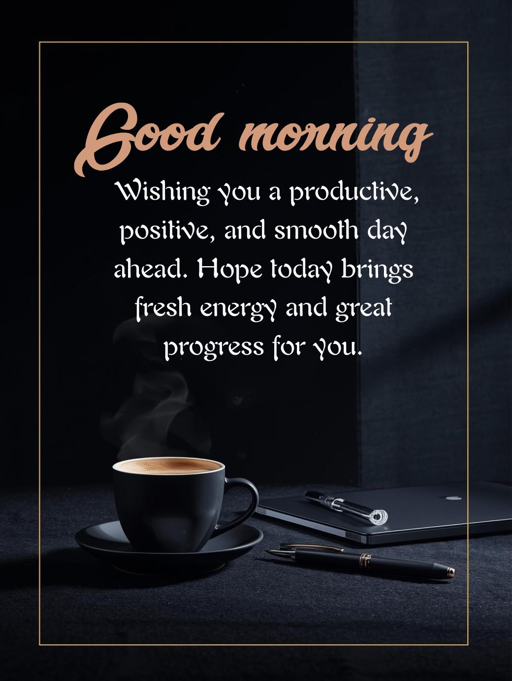“Wishing you a productive, positive, and smooth day ahead. Hope today brings fresh energy and great progress for you. “