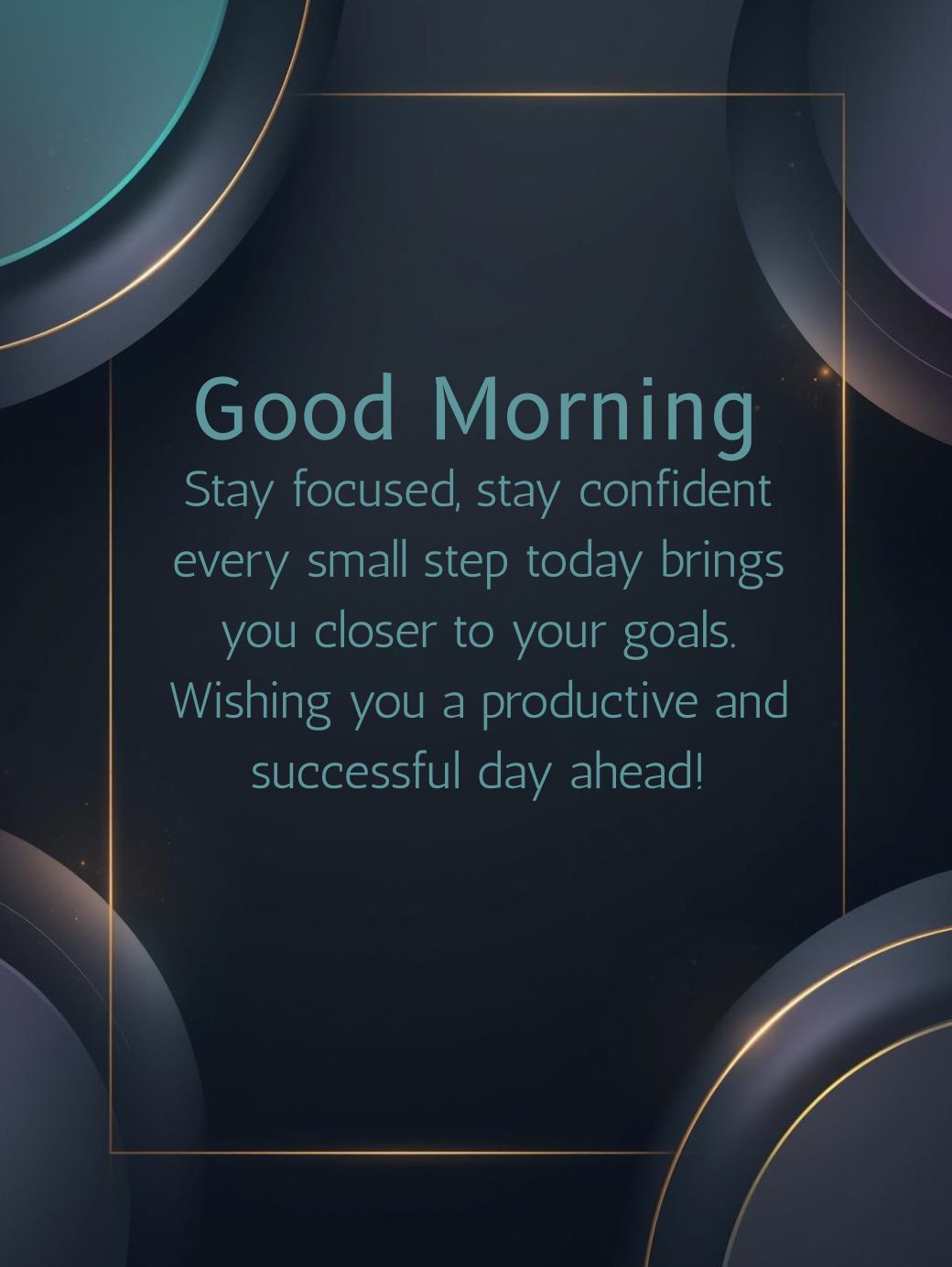 “Stay focused, stay confident every small step today brings you closer to your goals. Wishing you a productive and successful day ahead! “