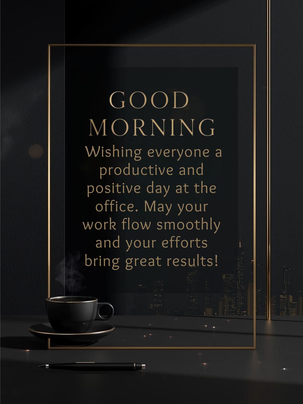 “Wishing everyone a productive and positive day at the office. May your work flow smoothly and your efforts bring great results! “