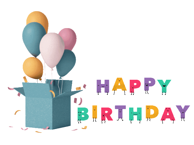 This Happy Birthday Gif showcases a lively and colorful celebration scene. From the center, animated balloons burst joyfully out of a gift box, filling the air with vibrant colors. As the balloons rise, shimmering confetti gently falls, adding a festive sparkle to the background. On one side of the frame, the letters spelling out “Happy Birthday” come to life with adorable, smiling faces, dancing playfully to create a cheerful and heartwarming vibe. The combination of motion, color, and cute expressions makes this GIF perfect for spreading birthday joy in a fun and memorable way.
