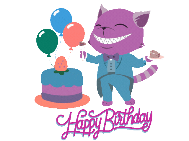 Happy Birthday GIF featuring a cat holding a birthday cake