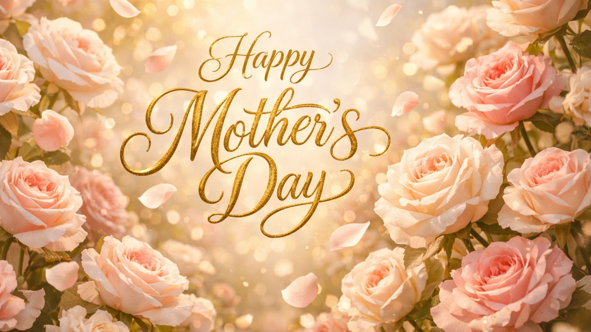 This beautiful Mother’s Day wallpaper captures the timeless charm of a blooming rose garden filled with soft pink and cream roses glowing under warm golden sunlight. Elegant calligraphy reading “Happy Mother’s Day” appears gently in the center, giving the design a romantic and luxurious feeling. The soft petals and dreamy atmosphere make this wallpaper a perfect tribute to the love, grace, and warmth that mothers bring into our lives.