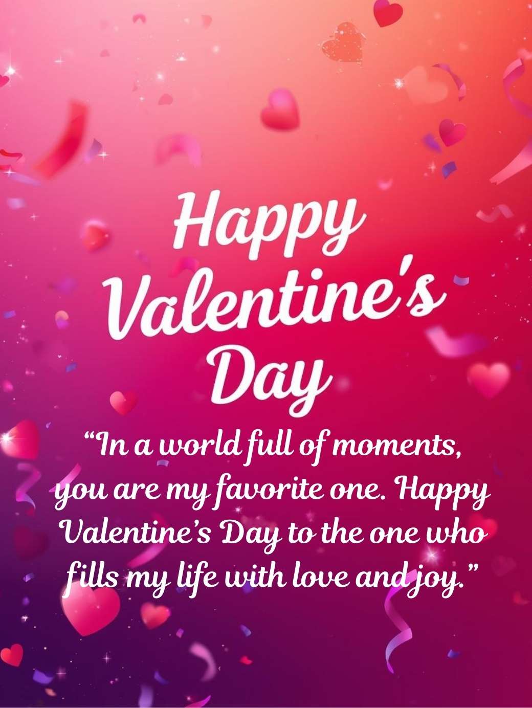 “In a world full of moments, you are my favorite one. Happy Valentine’s Day to the one who fills my life with love and joy.”