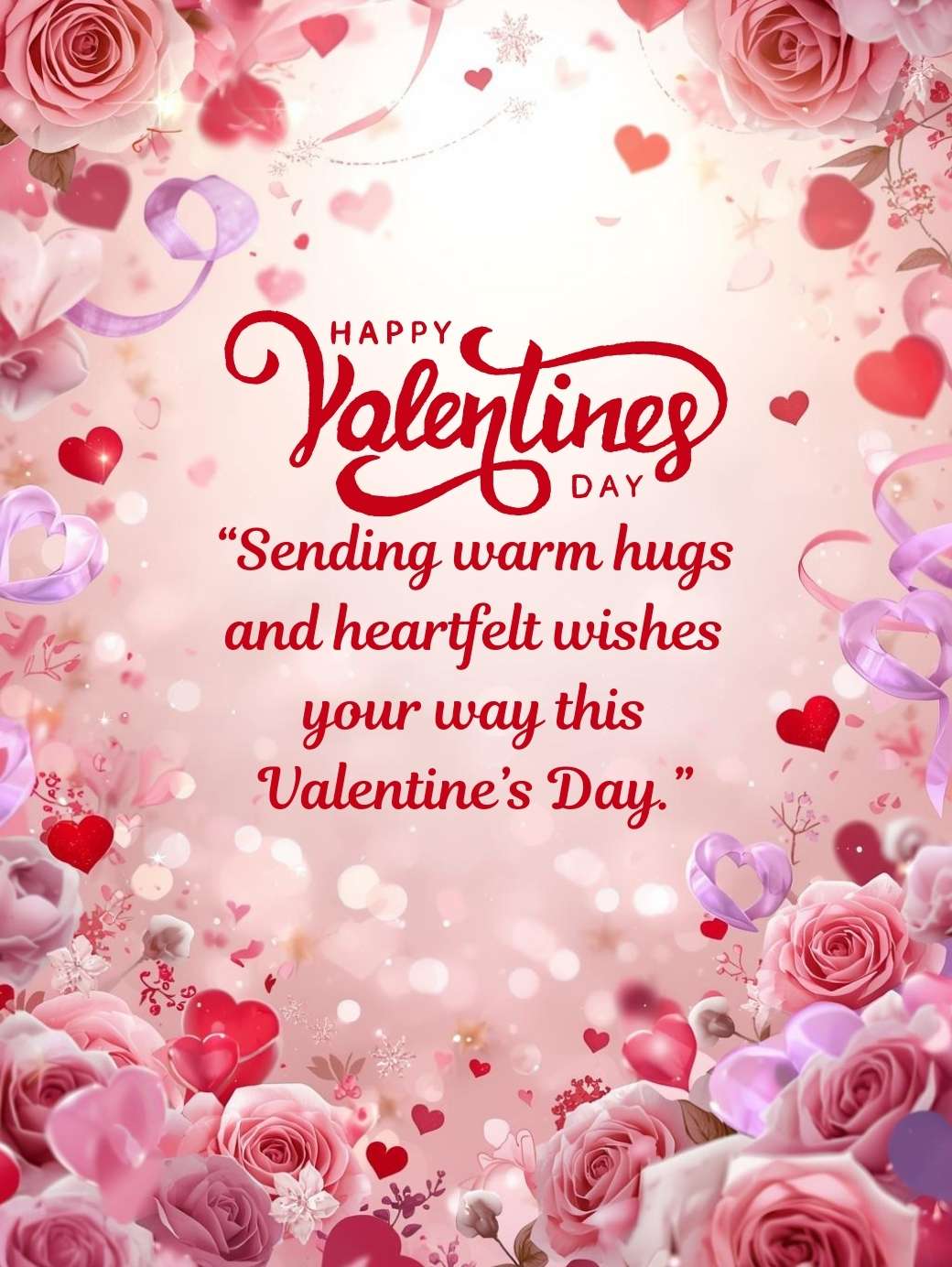 “Sending warm hugs and heartfelt wishes your way this Valentine’s Day.”