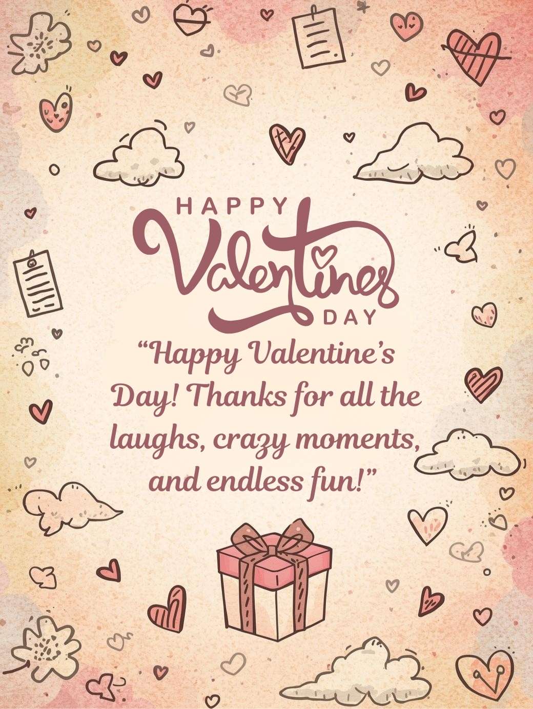 “Happy Valentine’s Day! Thanks for all the laughs, crazy moments, and endless fun!”