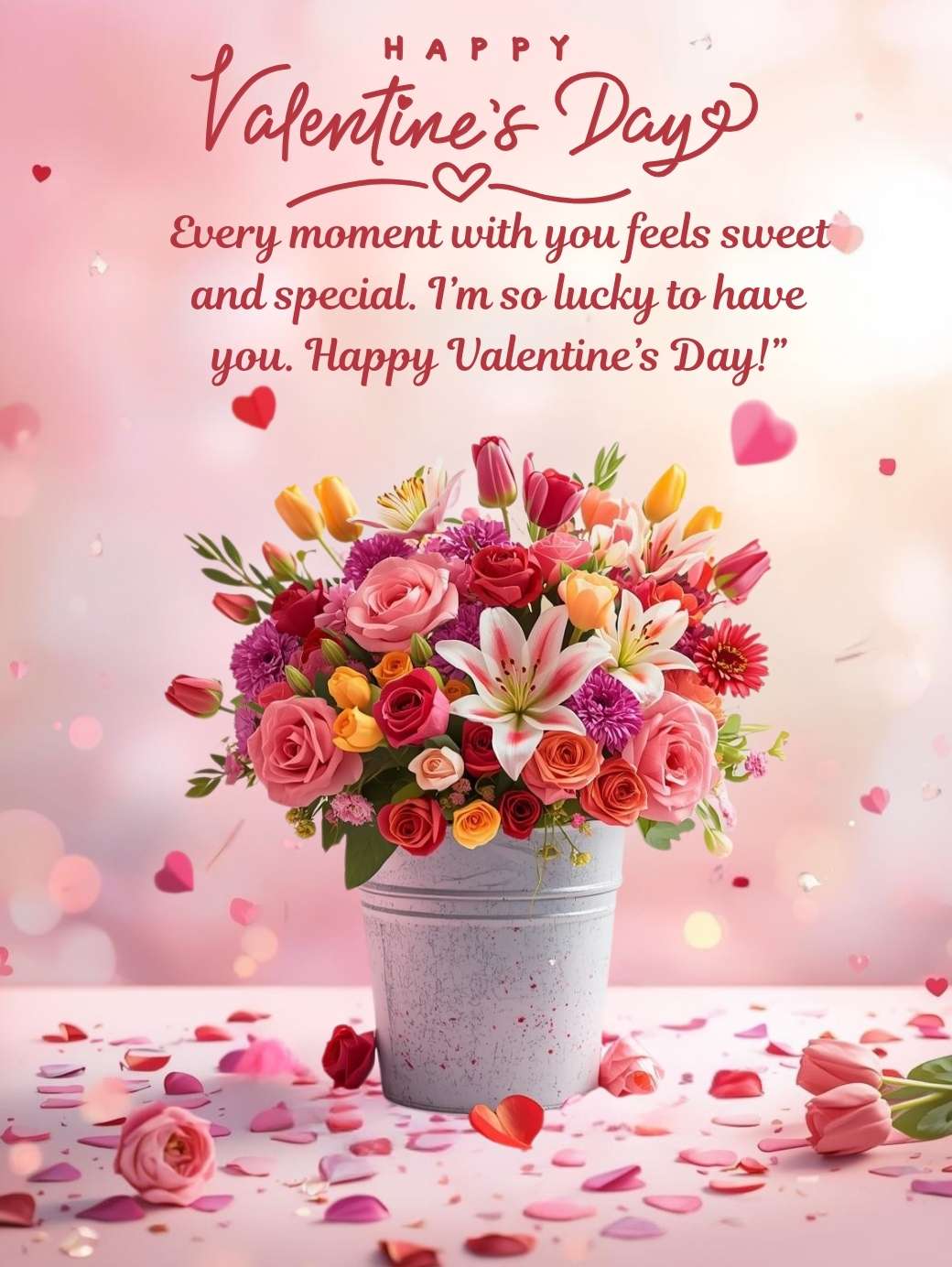 Every moment with you feels sweet and special. I’m so lucky to have you. Happy Valentine’s Day!”