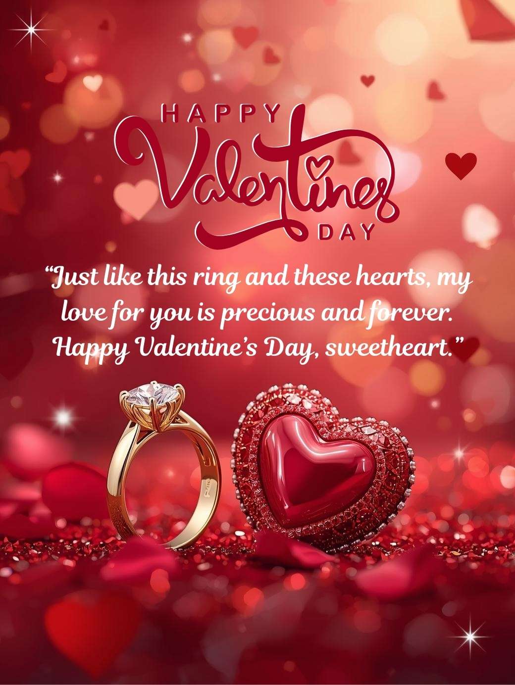 “Just like this ring and these hearts, my love for you is precious and forever. Happy Valentine’s Day, sweetheart.”