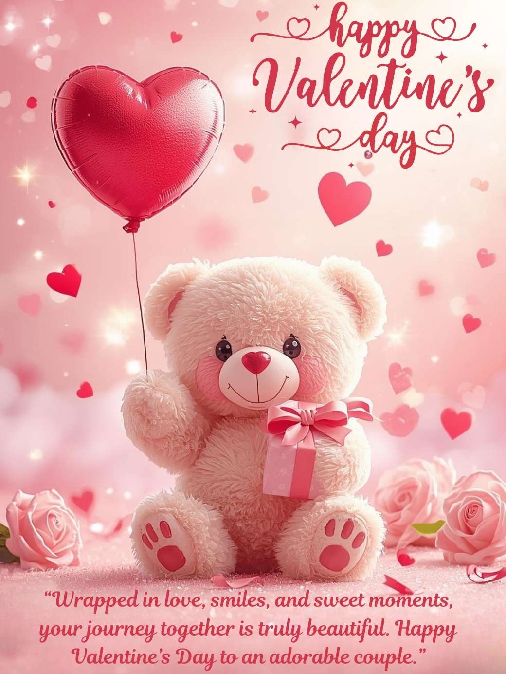“Wrapped in love, smiles, and sweet moments, your journey together is truly beautiful. Happy Valentine’s Day to an adorable couple.”