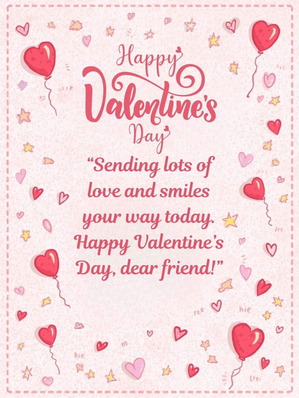 “Sending lots of love and smiles your way today. Happy Valentine’s Day, dear friend!”