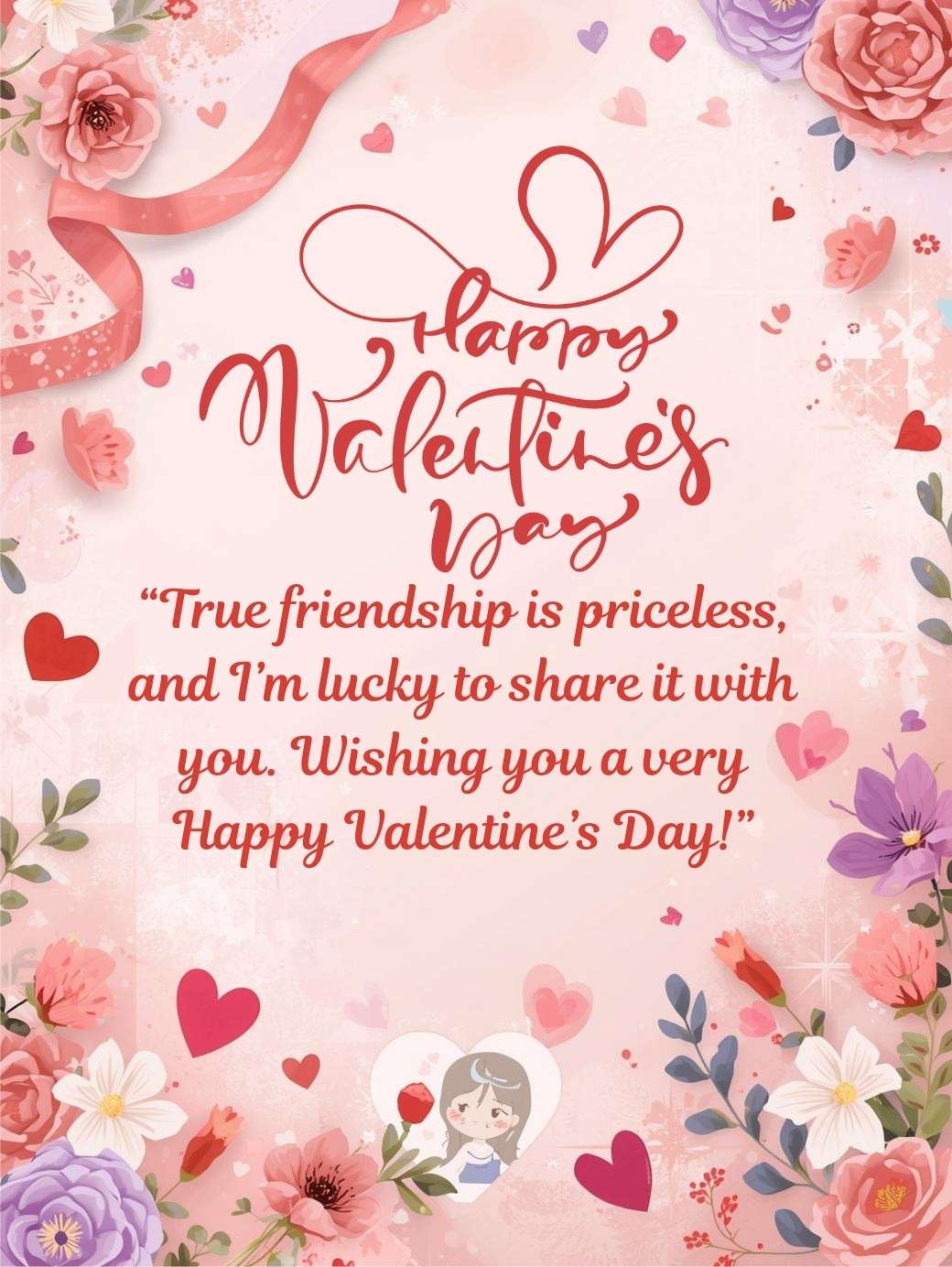 “True friendship is priceless, and I’m lucky to share it with you. Wishing you a very Happy Valentine’s Day!”