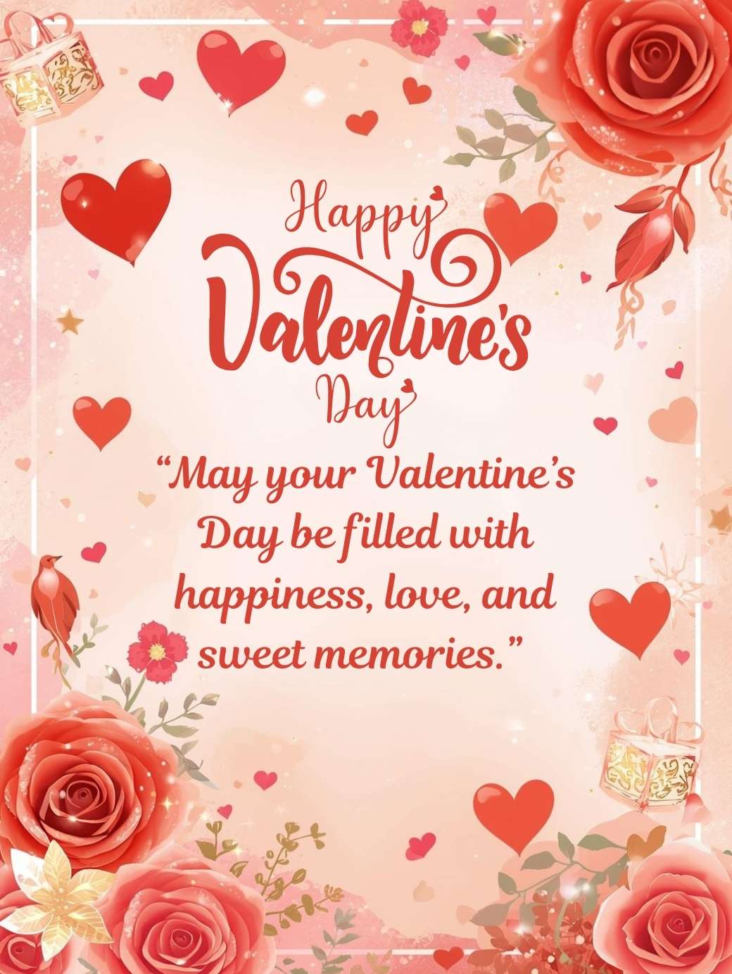 “May your Valentine’s Day be filled with happiness, love, and sweet memories.”