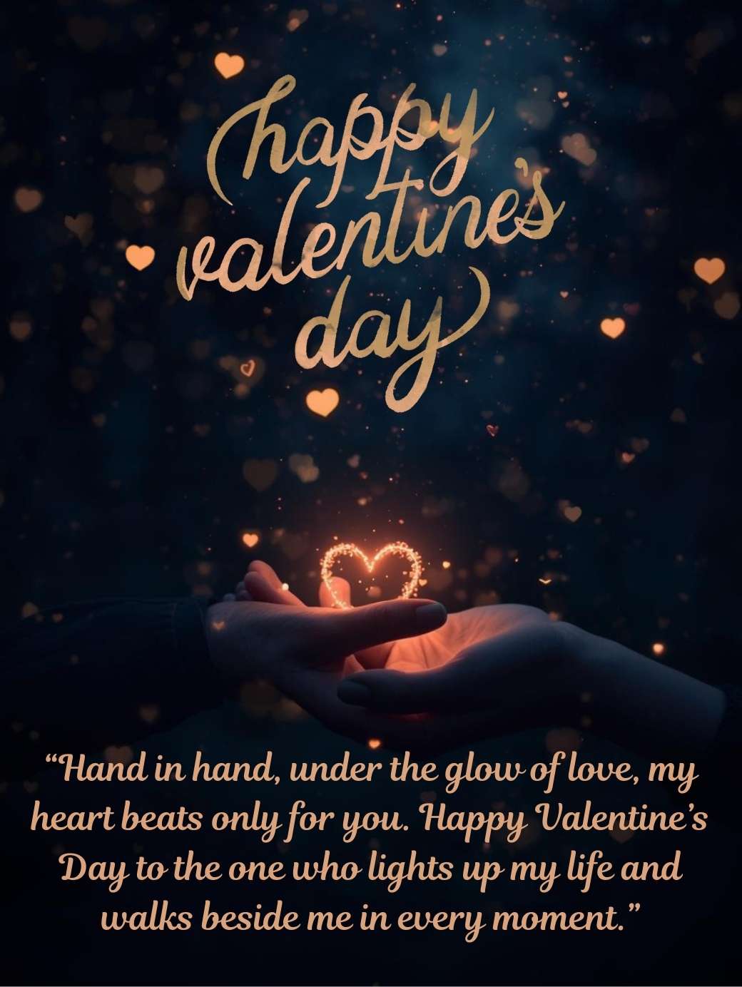 “Hand in hand, under the glow of love, my heart beats only for you. Happy Valentine’s Day to the one who lights up my life and walks beside me in every moment.”