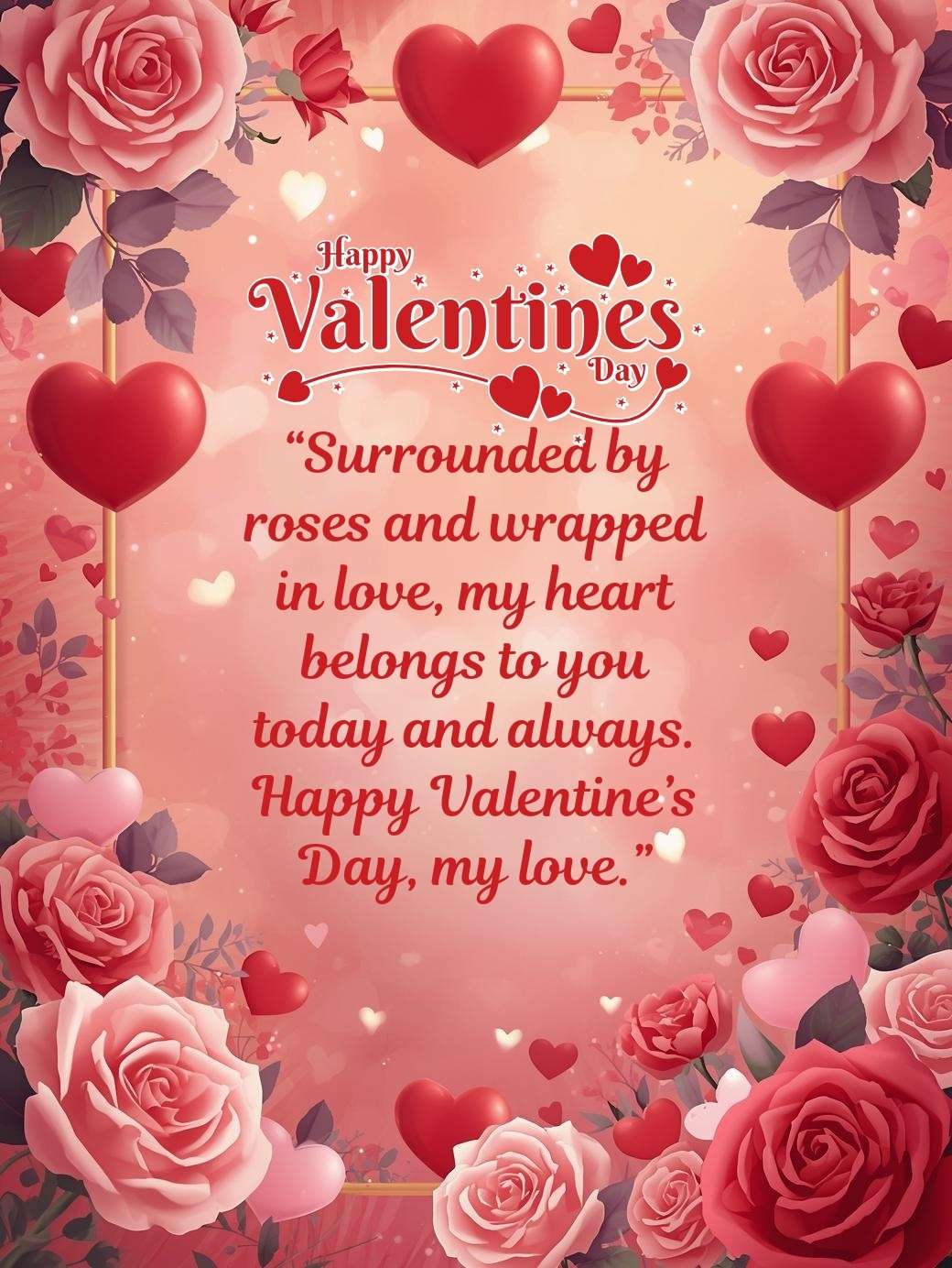 “Surrounded by roses and wrapped in love, my heart belongs to you today and always. Happy Valentine’s Day, my love.”