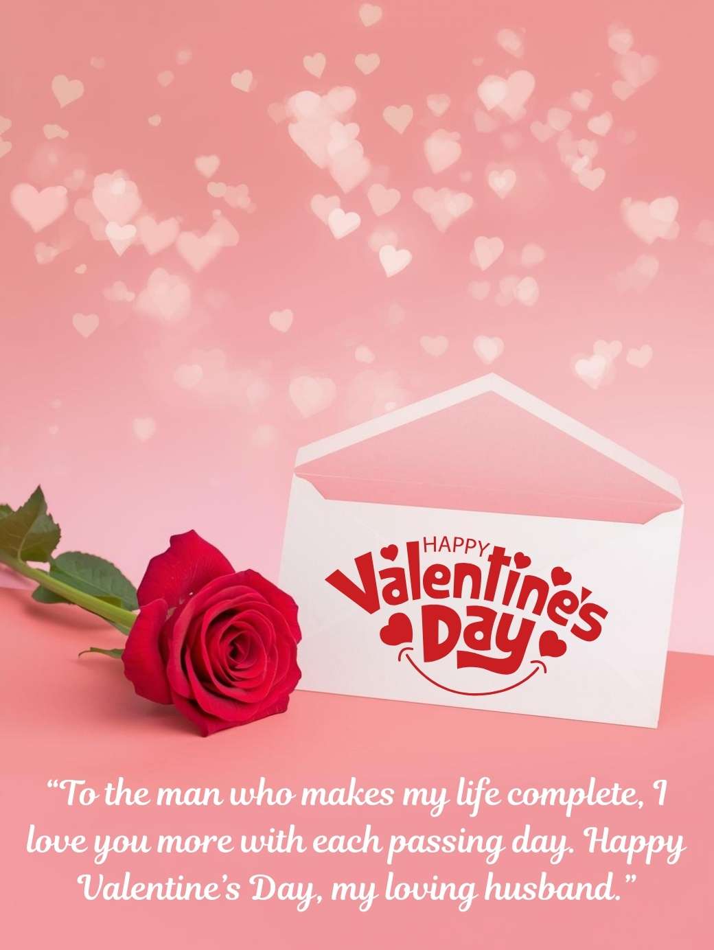 “To the man who makes my life complete, I love you more with each passing day. Happy Valentine’s Day, my loving husband.”