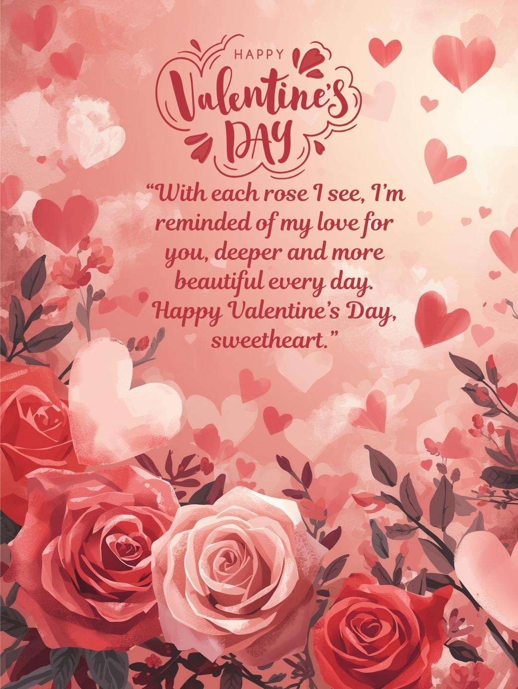 “With each rose I see, I’m reminded of my love for you, deeper and more beautiful every day. Happy Valentine’s Day, sweetheart.”