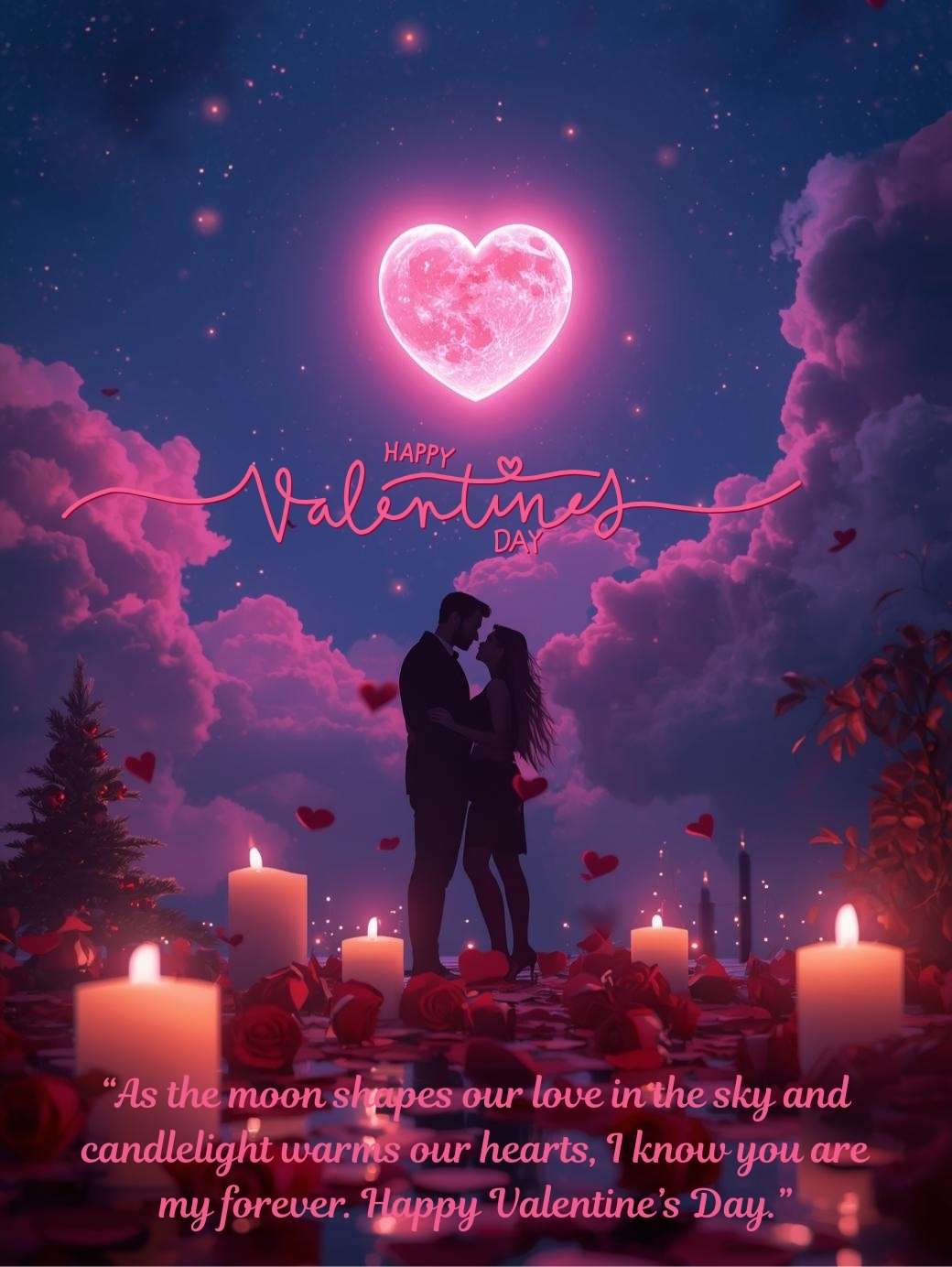 “As the moon shapes our love in the sky and candlelight warms our hearts, I know you are my forever. Happy Valentine’s Day.”