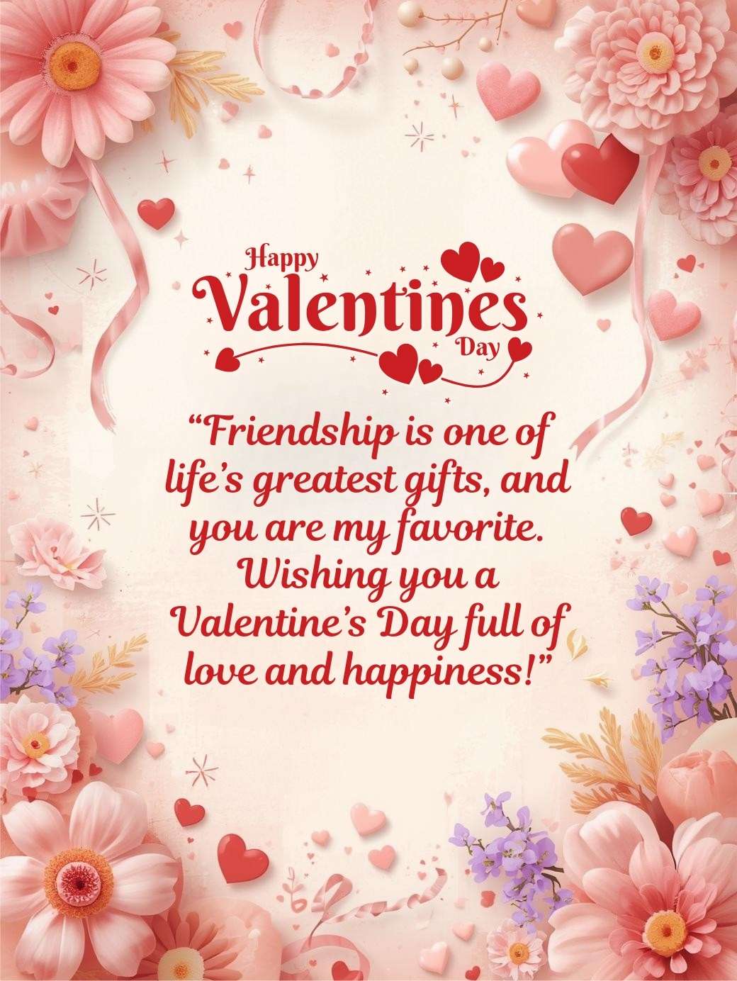 “Friendship is one of life’s greatest gifts, and you are my favorite. Wishing you a Valentine’s Day full of love and happiness!”