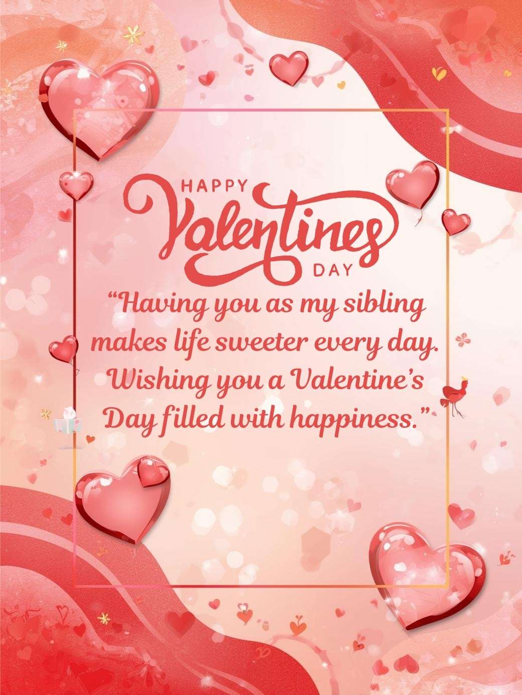 “Having you as my sibling makes life sweeter every day. Wishing you a Valentine’s Day filled with happiness.”