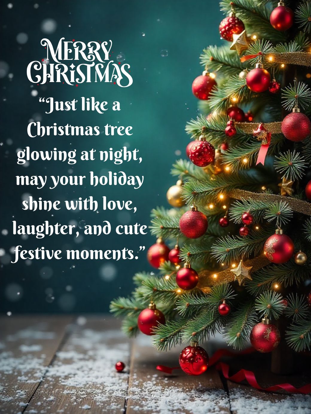 “Just like a Christmas tree glowing at night, may your holiday shine with love, laughter, and cute festive moments.”