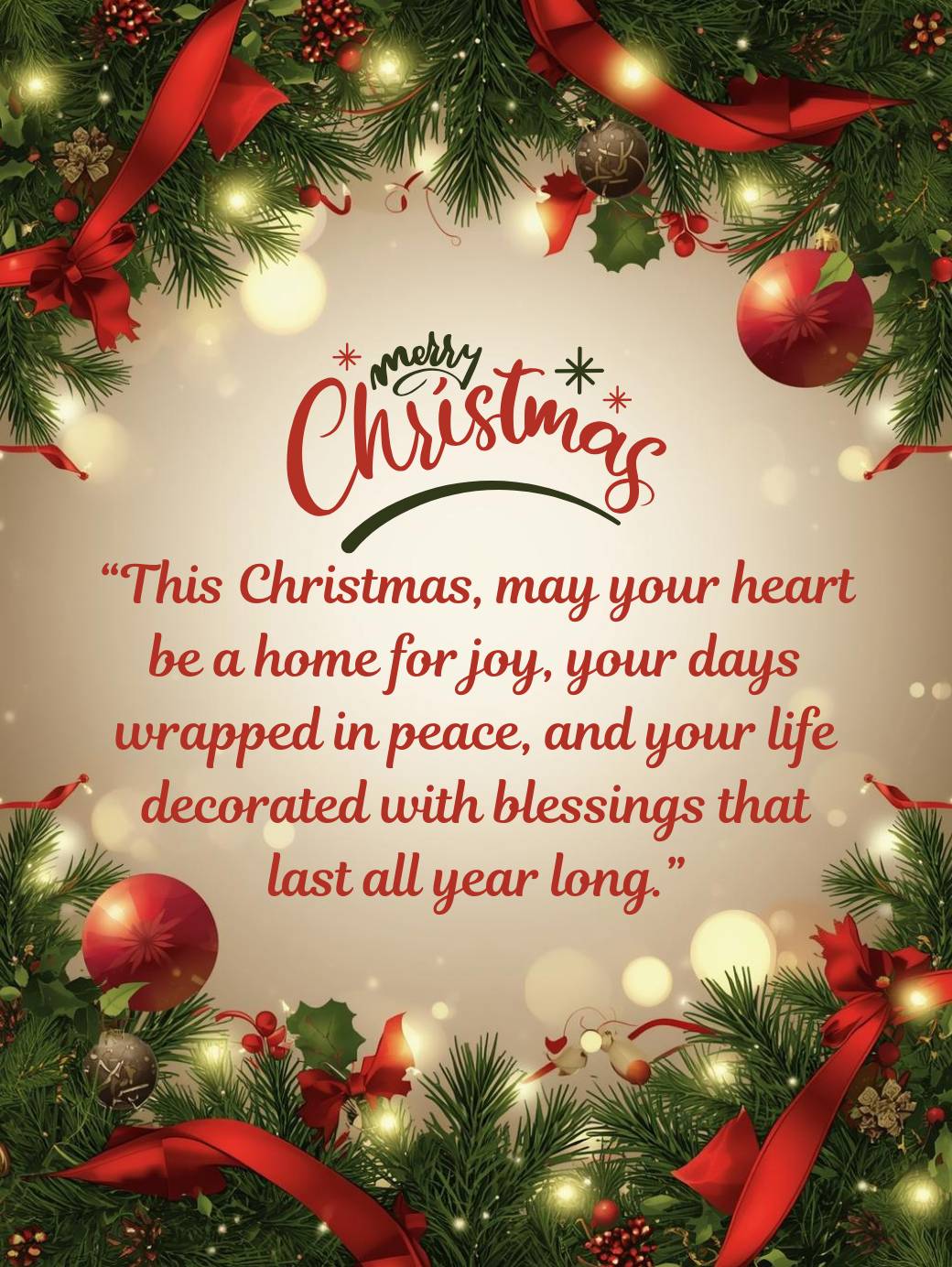 “This Christmas, may your heart be a home for joy, your days wrapped in peace, and your life decorated with blessings that last all year long.”