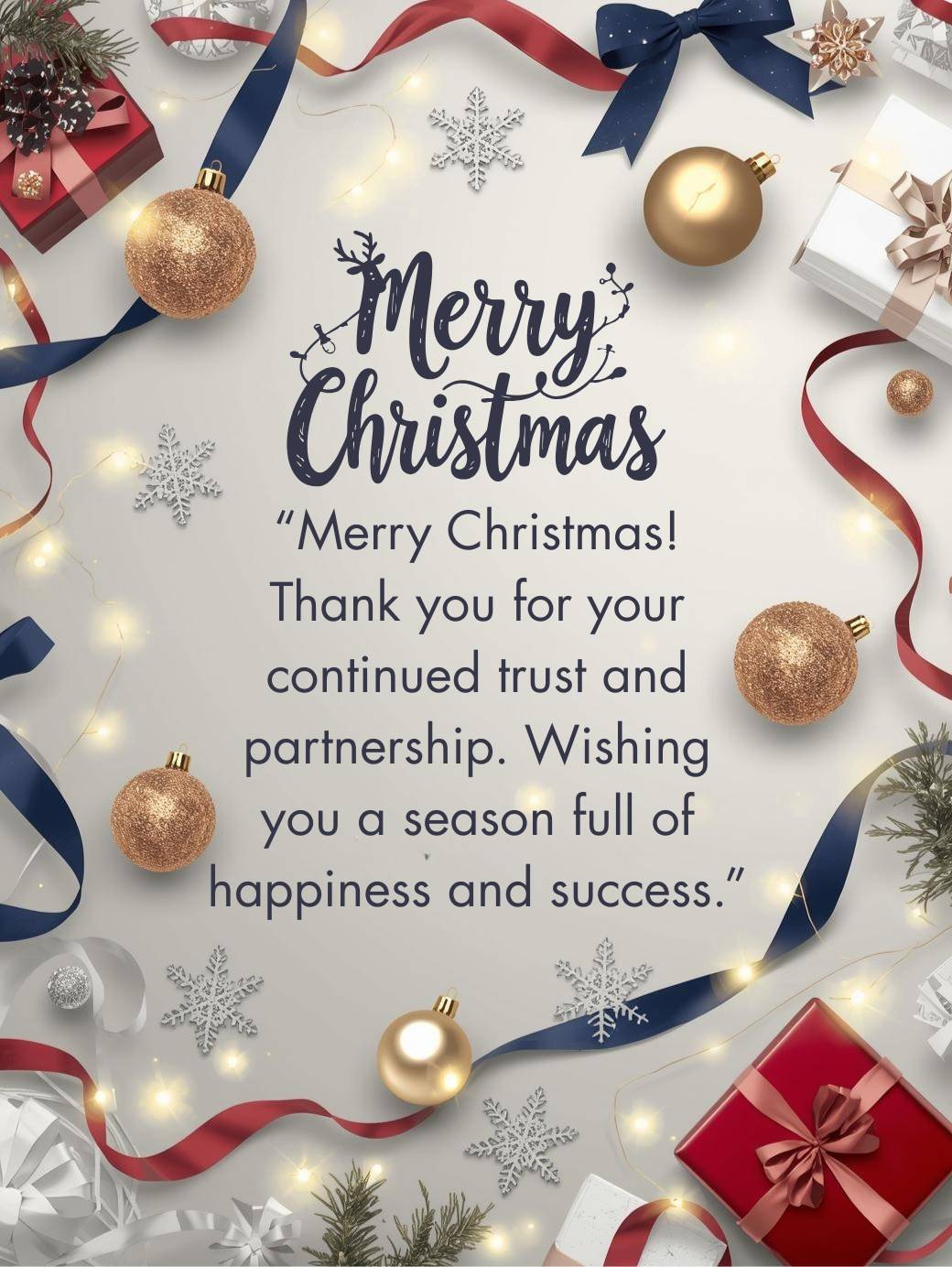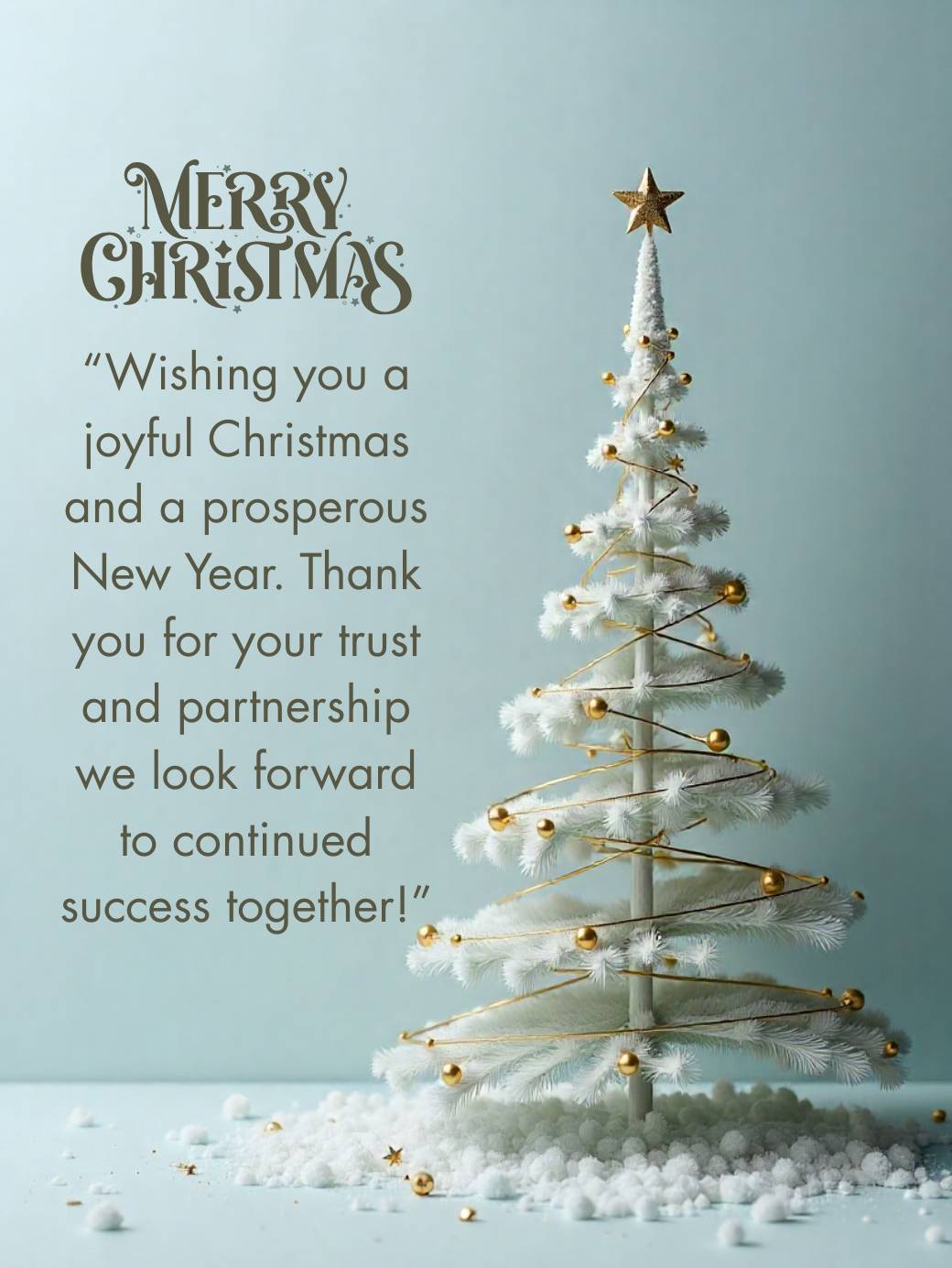 “Merry Christmas! Thank you for your continued trust and partnership. Wishing you a season full of happiness and success.”