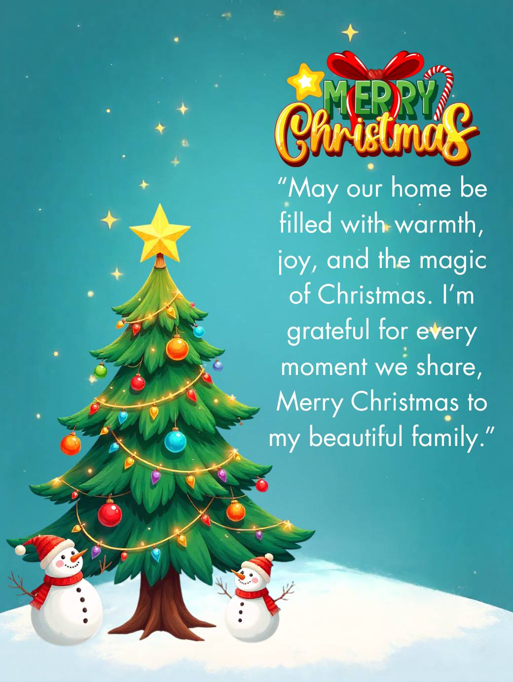 “Wishing my wonderful family a Christmas filled with love, laughter, and memories we’ll treasure forever. You are the heart of my holidays.”