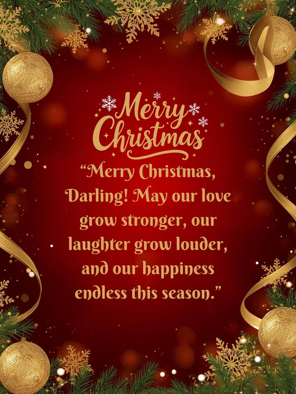 “Merry Christmas, Darling! May our love grow stronger, our laughter grow louder, and our happiness endless this season.”