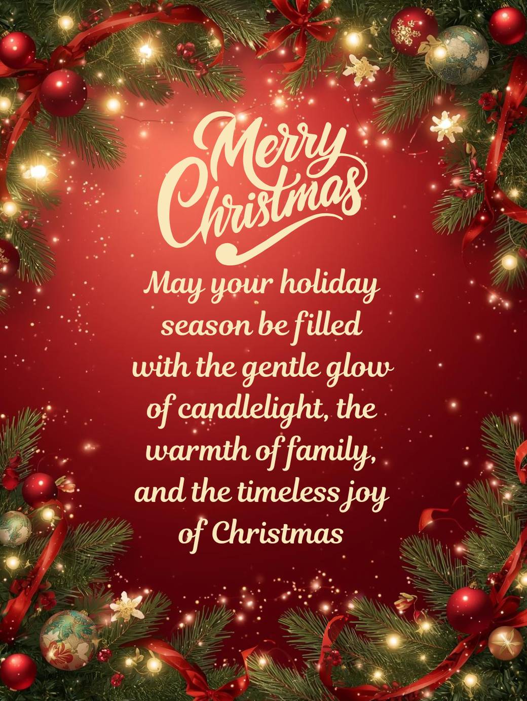” May your holiday season be filled with the gentle glow of candlelight, the warmth of family, and the timeless joy of Christmas”