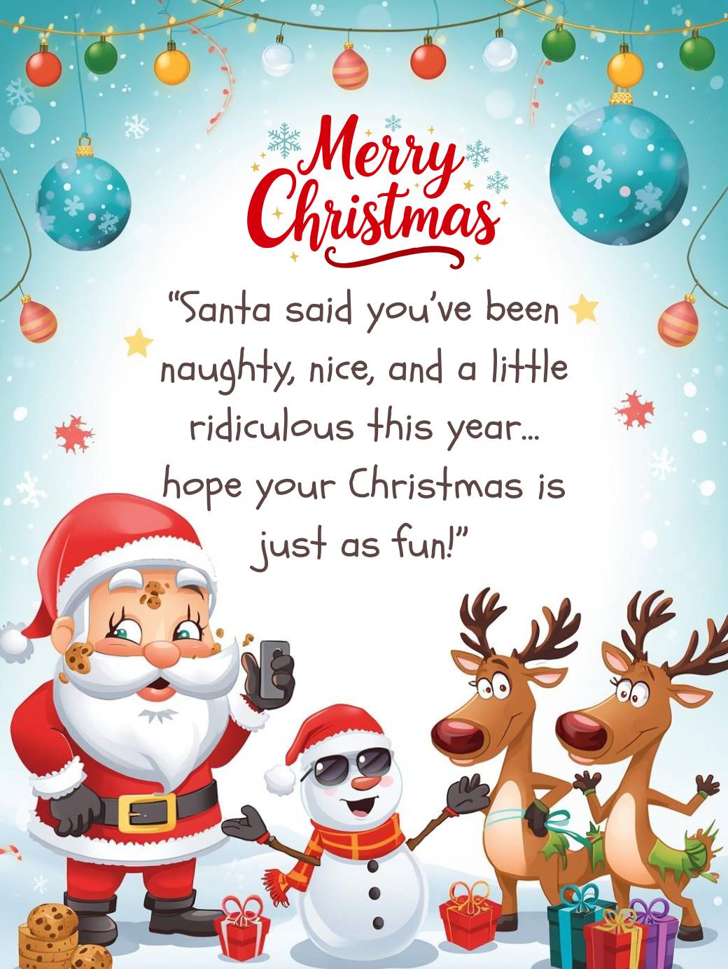 “Santa said you’ve been naughty, nice, and a little ridiculous this year… hope your Christmas is just as fun!”