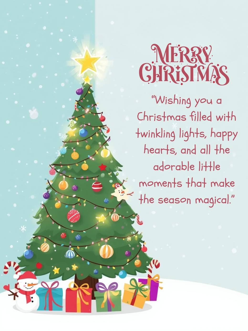 “Wishing you a Christmas filled with twinkling lights, happy hearts, and all the adorable little moments that make the season magical.”