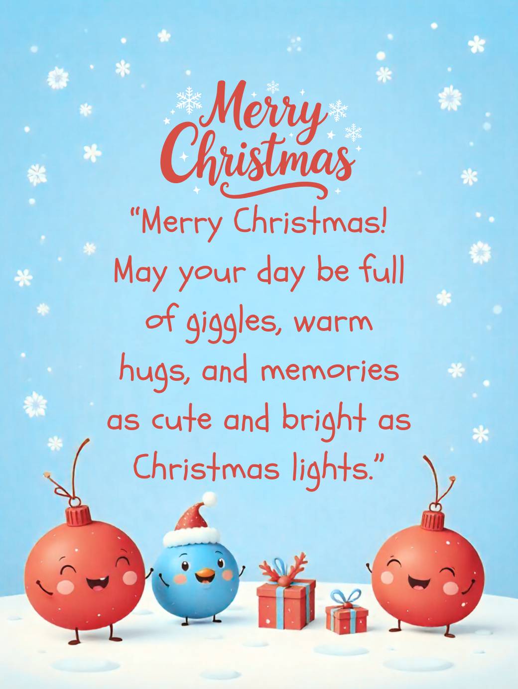 “Merry Christmas! May your day be full of giggles, warm hugs, and memories as cute and bright as Christmas lights.”