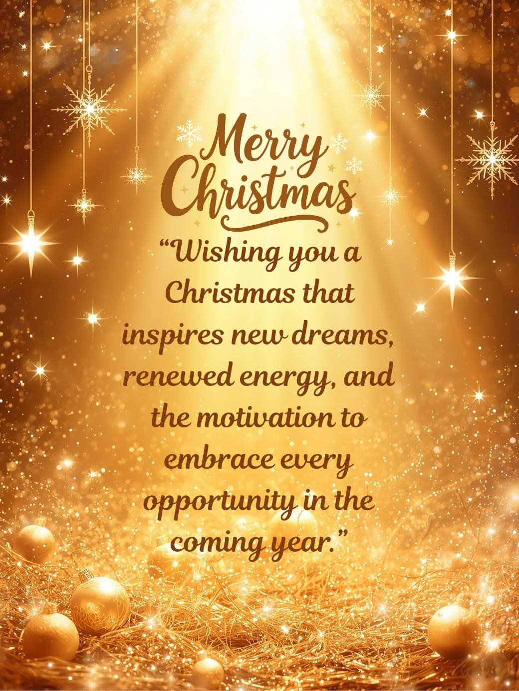 “Wishing you a Christmas that inspires new dreams, renewed energy, and the motivation to embrace every opportunity in the coming year.”