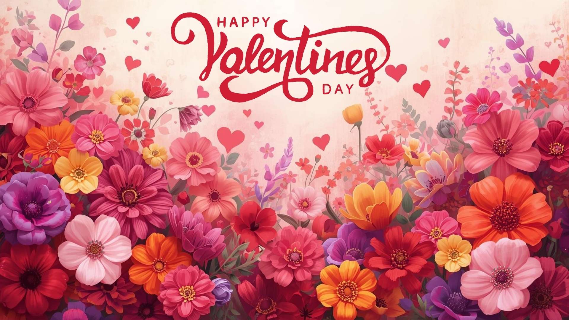 Happy Valentines Day Wallpaper with Flowers, Valentines Day Floral Wallpaper, Colorful Flowers Valentine Wallpaper, Hearts and Flowers Valentine Wallpaper, Happy Valentine’s Day Floral Design, Romantic Floral Valentine Wallpaper, Cheerful Valentine Wallpaper, Love Themed Valentine Wallpaper, Valentine Flower Arrangement Wallpaper, Valentine Heart Decoration Wallpaper, Romantic Valentine Background, Festive Valentine Wallpaper