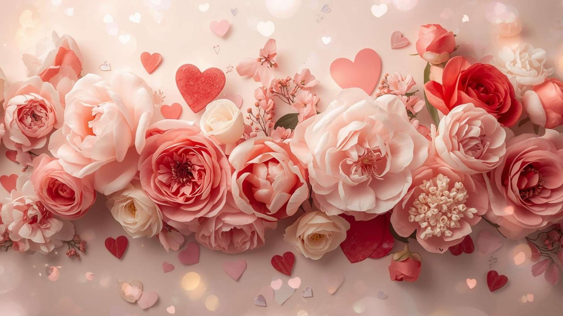 Valentines Day Wallpaper with Roses, Roses and Tulips Valentine Wallpaper, Red White and Pink Roses Wallpaper, Romantic Floral Valentine Wallpaper, Hearts and Roses Valentine Wallpaper, Elegant Valentine Wallpaper, Floral Valentine Wallpaper, Romantic Love Valentine Wallpaper, Valentine Flower Arrangement Wallpaper, Valentine Heart Decoration Wallpaper, Festive Floral Valentine Wallpaper, Valentine Bouquet Wallpaper