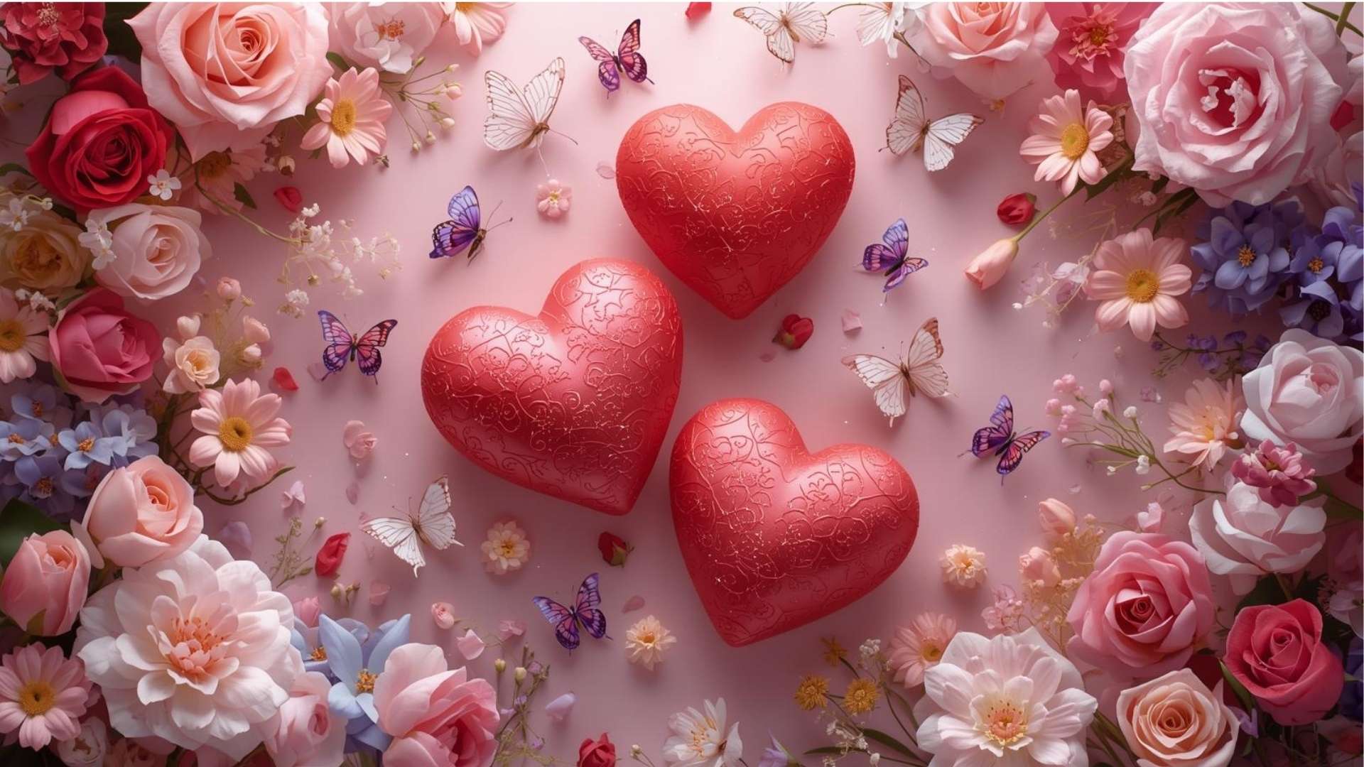 Creative Valentines Day Wallpaper, Valentines Day Creative Wallpaper, Valentine’s Day Wallpaper, Romantic Creative Valentine Wallpaper, Hearts and Butterflies Valentine Wallpaper, Pink and Red Valentine Wallpaper, Playful Valentine Wallpaper, Lively Valentine Wallpaper, Romantic Valentine Background, Love Themed Wallpaper, Valentine Celebration Wallpaper, Cute Valentine Wallpaper, Valentine Desktop Wallpaper, Valentine Screen Wallpaper, Colorful Valentine Wallpaper