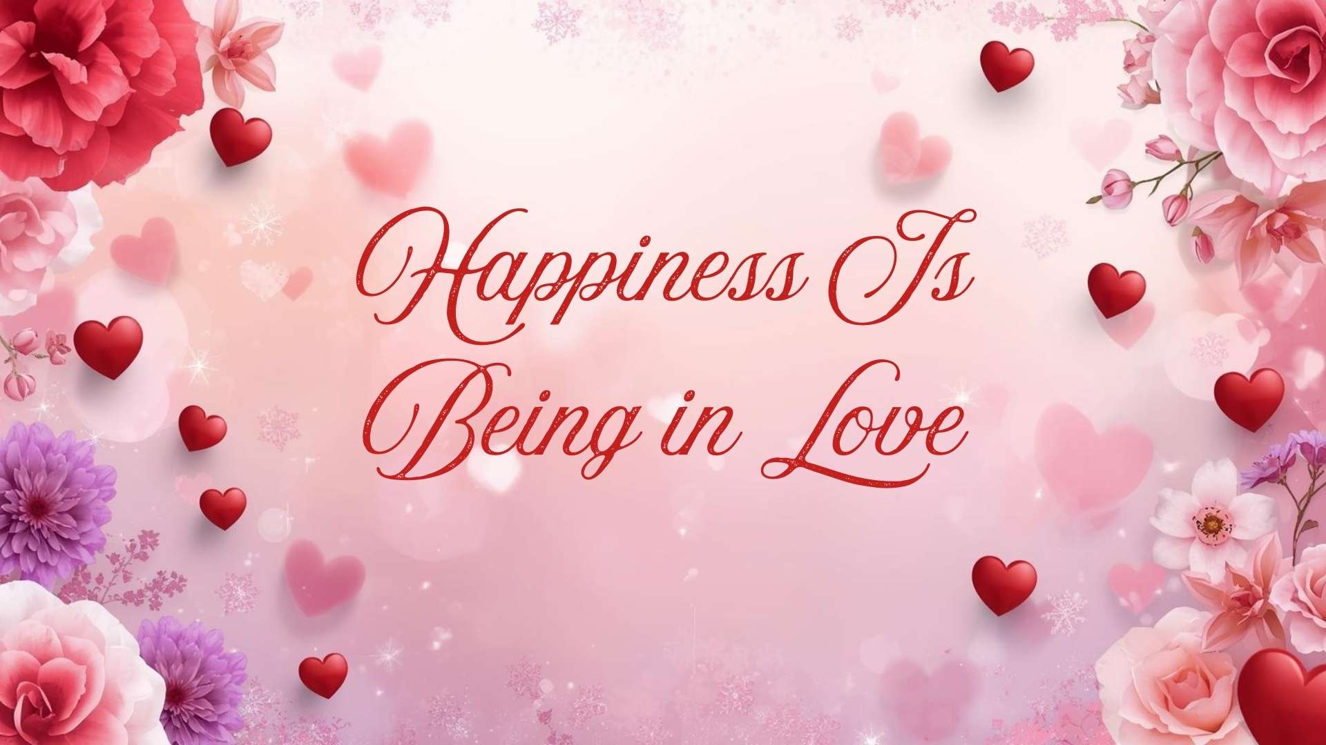 Valentines Day Wallpaper with Modern Love Quote & Typography, Modern Love Quote Valentine Wallpaper, Valentines Day Typography Wallpaper, Happiness is Being in Love Wallpaper, Romantic Quote Valentine Wallpaper, Floral Valentine Wallpaper, Love Themed Valentine Wallpaper, Elegant Valentine Wallpaper, Romantic Valentine Wallpaper